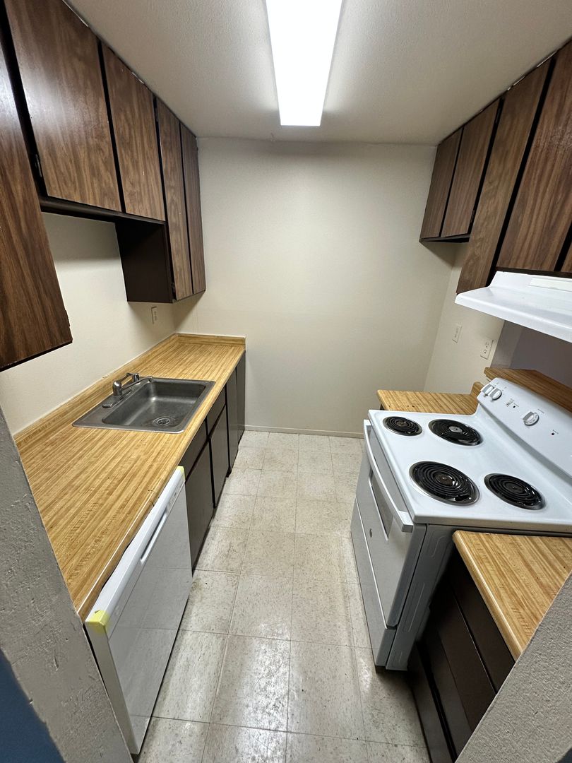 The kitchen includes both an electric stove and a dishwasher to make daily chores a breeze. Stay cool with the window A/C unit and enjoy your own private front patio. A convenient on-site laundry facility is also available.